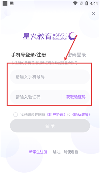 3、在對應輸入框填寫手機號、驗證碼。