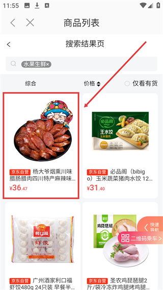 3、在【水果生鮮】商品列表中,找到商品,點擊可進入詳情頁。