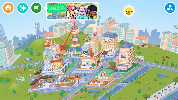 3、看到【商店上新】提示后,在城市場景中找到對應建筑,準備進入新場景互動。