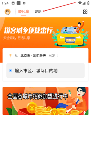 1、點擊【跑腿】選項,切換至跑腿服務頁面。