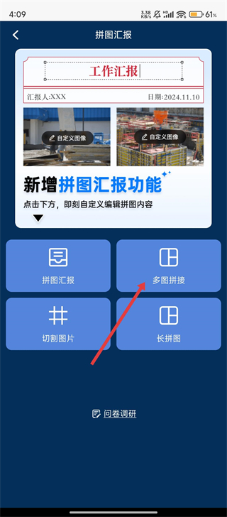3、我們?cè)诠δ茼撁纥c(diǎn)擊【多圖拼接】,進(jìn)入照片拼圖的編輯界面。