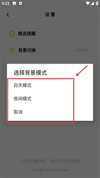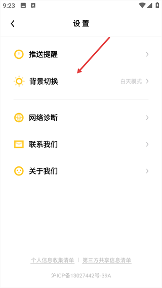 3、在【設置】頁面找到【背景切換】選項并點擊,觸發背景模式選擇的彈窗。