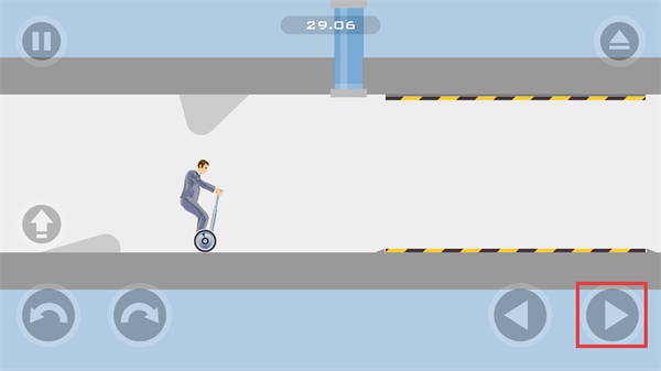 1、點擊【向右箭頭】按鈕,控制角色向右移動,避開前方的障礙物,保持平穩(wěn)前進。