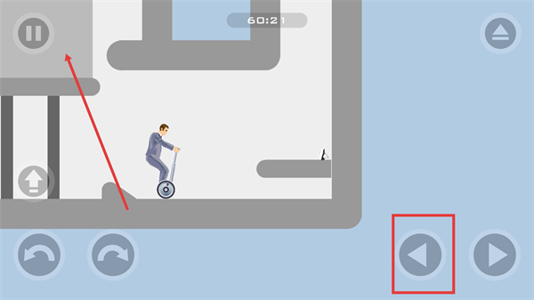2、連續(xù)點擊【向左箭頭】按鈕,讓角色快速前進,跨越斷裂的平臺,避免掉落。