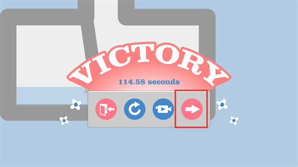 4、通關(guān)后見【VICTORY】提示,點擊【向右箭頭】進下一關(guān),爭取更快完成時間。