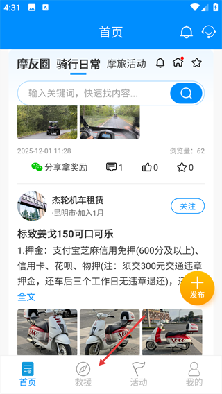 1、點(diǎn)擊底部【救援】選項(xiàng),進(jìn)入救援頁面。