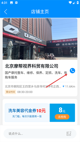 4、點(diǎn)擊聯(lián)系按鈕,可咨詢或預(yù)約該店鋪的相關(guān)服務(wù)。