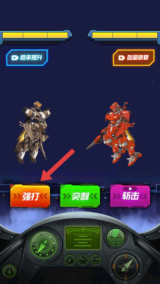2、戰斗界面中,根據敵方機甲狀態,點擊【強打】按鈕,對敵方機甲發動強力攻擊。