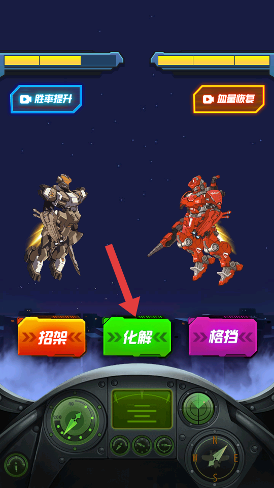 3、當我方機甲受到攻擊時,迅速點擊【化解】按鈕,嘗試減少受到的傷害。