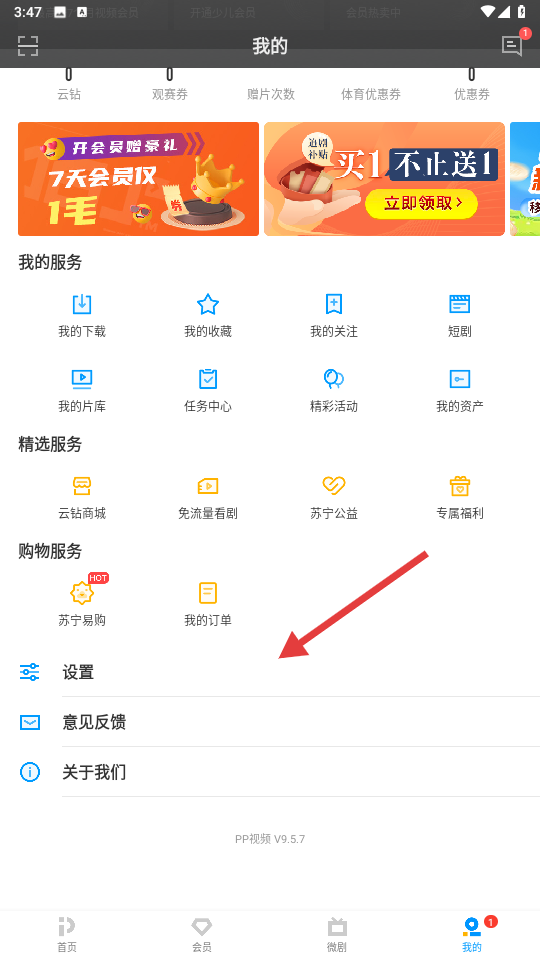 1、在PP視頻首頁,點擊右下角【我的】,進入個人頁面。