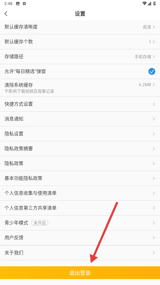 3、在設置界面底部,點擊【退出登錄】按鈕。