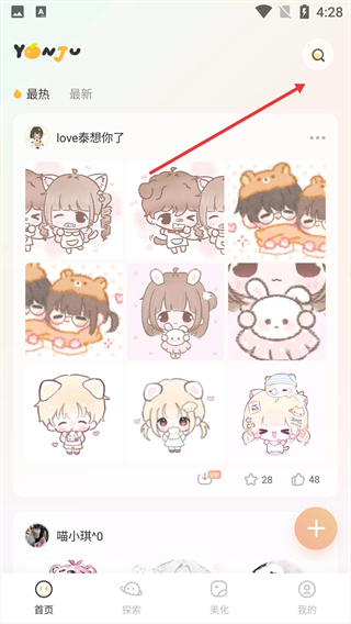 1、進(jìn)入APP,點(diǎn)擊右上角的搜索按鈕,進(jìn)入搜索操作界面。