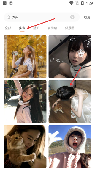 3、在搜索結(jié)果頁面,切換至“頭像”分類標(biāo)簽,選擇目標(biāo)頭像。
