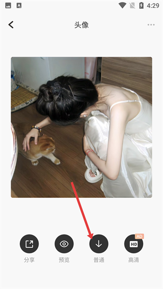 4、進(jìn)入詳情頁面,點(diǎn)擊“普通”(對應(yīng)下載功能)按鈕,完成該頭像素材的下載。