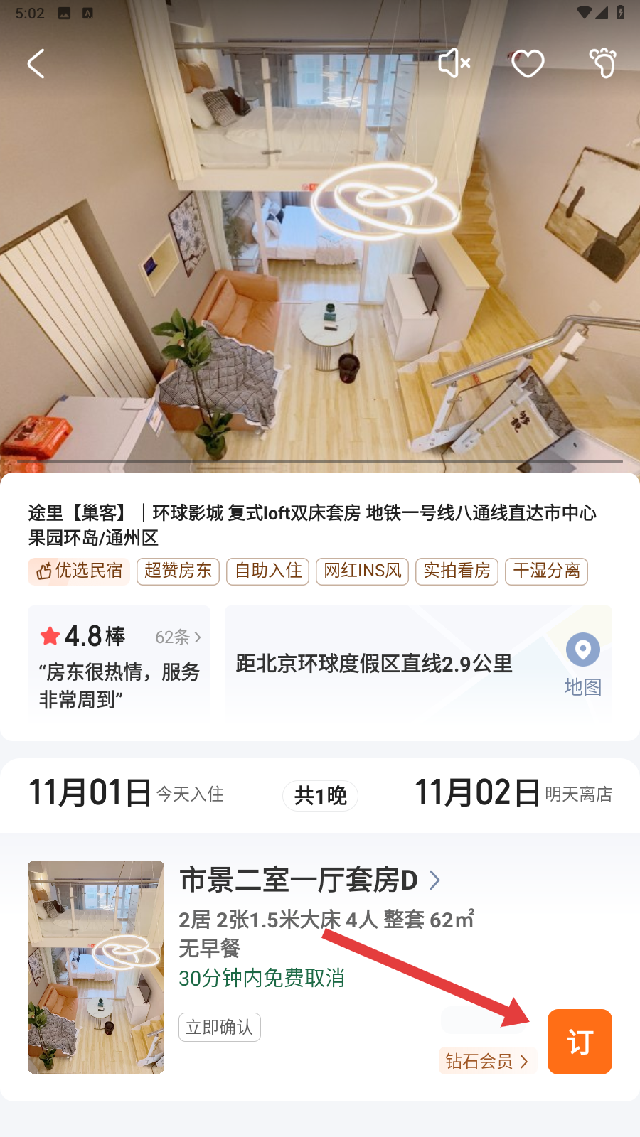 3、從搜索結果中挑選心儀酒店,如【途里-巢客-復式loft雙床套房】,點擊進入詳情頁,進一步了解房源情況喲。