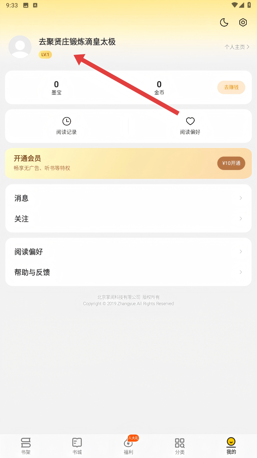 1、打開追讀小說,進(jìn)入【我的】頁面,點擊自己的昵稱區(qū)域,就能進(jìn)入個人主頁啦。