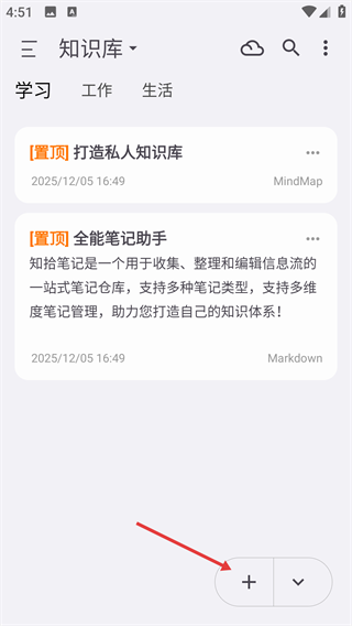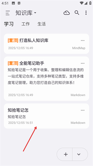 4、新創(chuàng)建的筆記會顯示在內(nèi)容列表中。