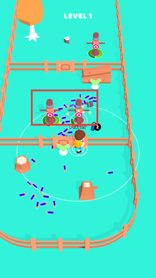 2、射擊時瞄準紅框內靶標,利用場地道具,清除目標推進Level1進程。