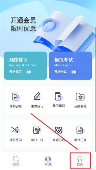 1、在【考試】頁(yè)面點(diǎn)擊底部【我的】入口,進(jìn)入個(gè)人中心界面。