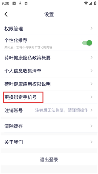 2、進入【設置】頁面后,能看到多個選項,找到【更換綁定手機號】選項并點擊,即可進入對應的操作頁面。