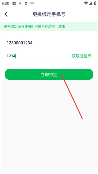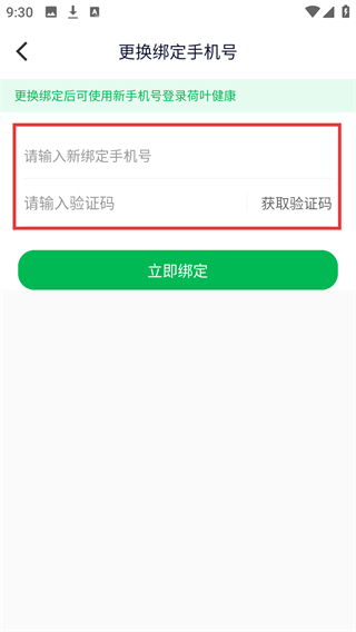 4、在【更換綁定手機號】頁面填好新手機號與驗證碼后,點擊【立即綁定】完成操作。