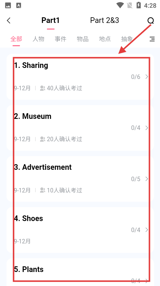 2、在Part1頁(yè)面,選擇想要練習(xí)的話題。