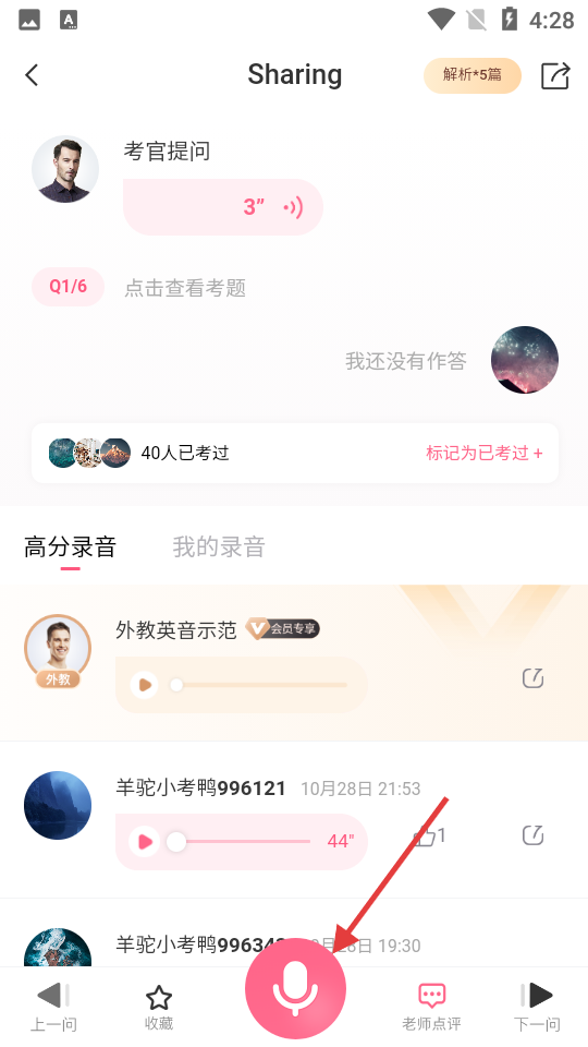 3、點(diǎn)擊麥克風(fēng)圖標(biāo)錄音作答。