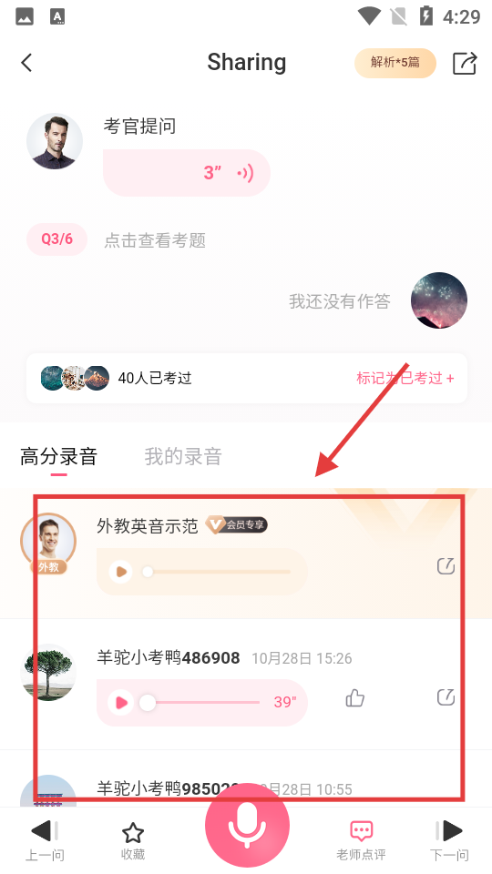 4、下方可收聽(tīng)高分錄音、外教英音示范等內(nèi)容,完成口語(yǔ)練習(xí)。