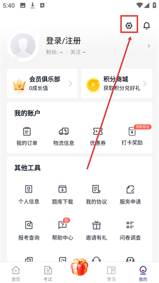 2、進(jìn)入【我的】頁面后,點(diǎn)擊右上角【設(shè)置】圖標(biāo),即可進(jìn)入設(shè)置界面查看各類系統(tǒng)配置選項(xiàng)。