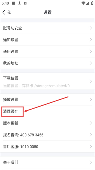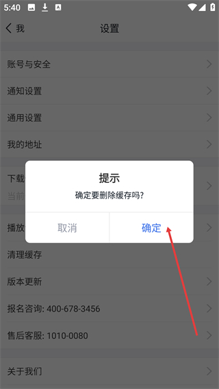 3、在【設(shè)置】頁面,選擇【清理緩存】選項(xiàng)并點(diǎn)擊,即可觸發(fā)緩存刪除的確認(rèn)提示彈窗。