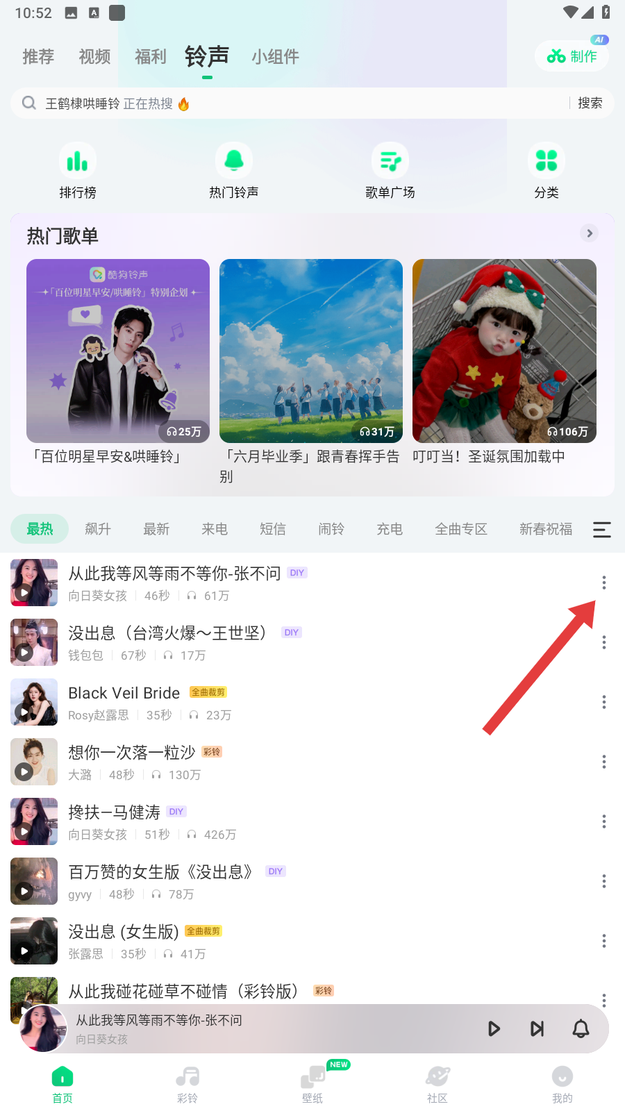 1、在首頁點擊【鈴聲】標簽,進入鈴聲專區,這里有豐富鈴聲可供挑選,下載本地的第一步就完成啦。