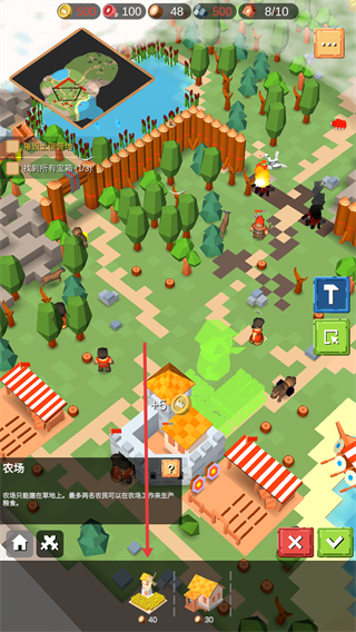 4、紅箭頭指向【農場】建筑,解鎖該建筑可生產食物支撐營地發展。