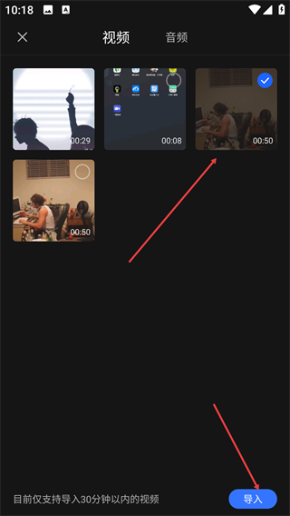 2、選中目標視頻文件后,點擊頁面下方的【導入】按鈕。