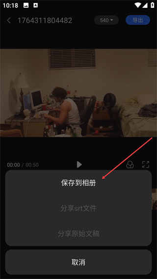 4、在彈出的導出選項菜單里,選擇【保存到相冊】選項,即可將處理完成的內(nèi)容保存至相冊中。
