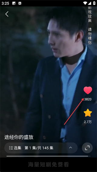 3、在短劇播放頁面,可以點擊右側的點贊和收藏圖標。