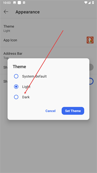 5、選擇Dark點擊Set Theme完成深色模式切換。