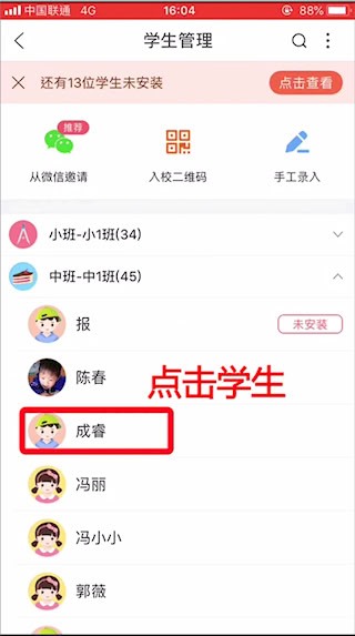 2、于學(xué)生管理頁面找到指定學(xué)生,點擊其姓名