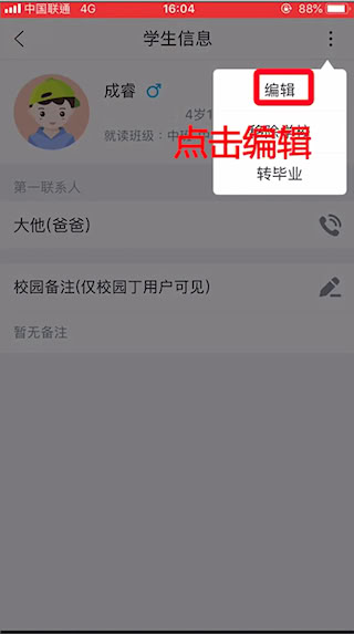3、進入學(xué)生信息頁,點擊右上角三點圖標(biāo),選擇編輯選項