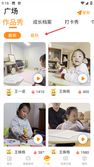 2、在【作品秀】頁面點擊【最熱】標簽,切換至熱門作品列表。