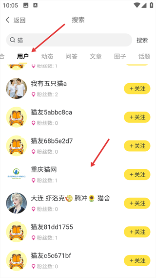 3、在搜索結果頁面,切換至“用戶”標簽頁,選擇目標用戶進入其主頁。