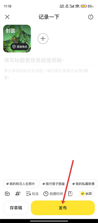 4、最后我們選好圖片設為封面,補充內容后點擊【發布】完成上傳啦。