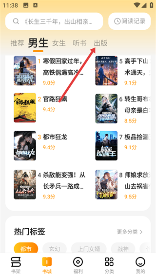 1、我們可以點(diǎn)擊頂部【出版】標(biāo)簽,切換到出版類書籍板塊呢。