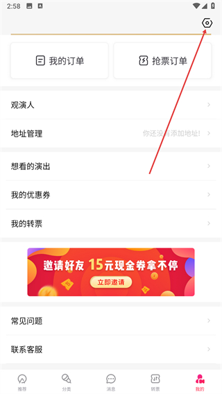 2、進入我的頁面,找到右上角的設置選項并點擊進入界面。