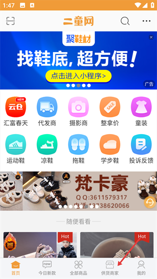 1、點(diǎn)擊底部“供貨商家”選項(xiàng),進(jìn)入供貨商家頁(yè)面。