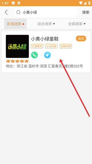 4、在搜索結(jié)果里找到目標(biāo)商家,點(diǎn)擊即可進(jìn)店查看。