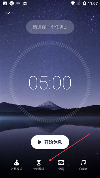 1、點擊底部【計時模式】選項,彈出計時模式選擇彈窗。