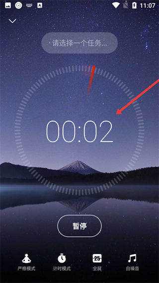 4、界面顯示計時時長,同時出現【暫停】按鈕可中斷計時。