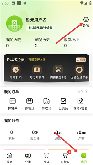1、在“我的”頁面,點擊右上角“設置”選項,進入設置界面。
