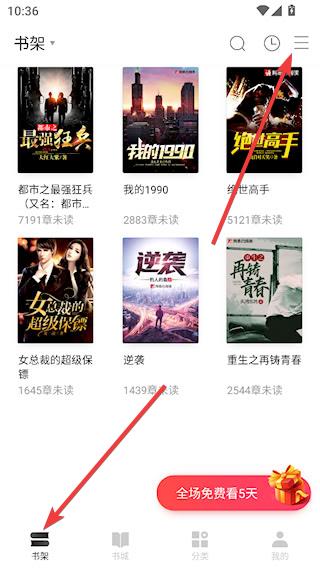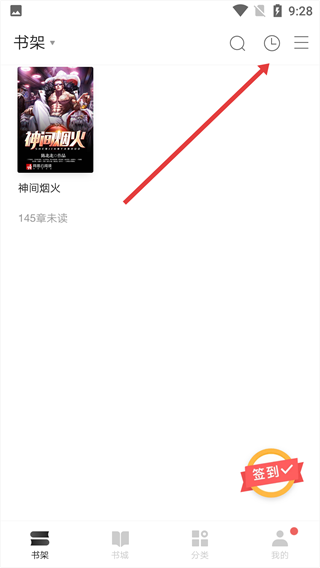 2、在書架頁面,點擊右上角圖標,進入閱讀歷史頁面。