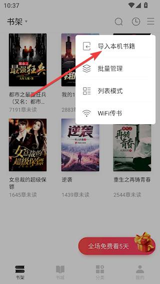 2、點擊圖中右上角“三”,找到并點擊【導入本機書籍】